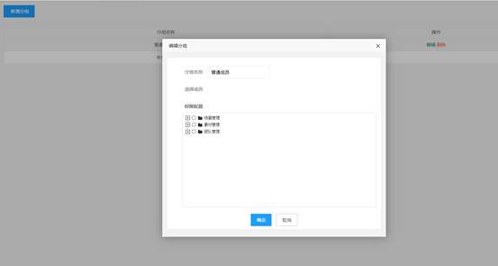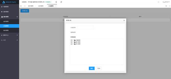 进入分组管理界面,点击新增分组,打开新增分组面板,输入分组名称,选择对应的权限,点击确定,完成分组创建。