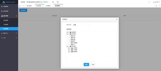 进入角色管理界面,点击添加角色,打开添加角色面板,输入角色名称,选择对应的权限,点击确定,完成角色创建。