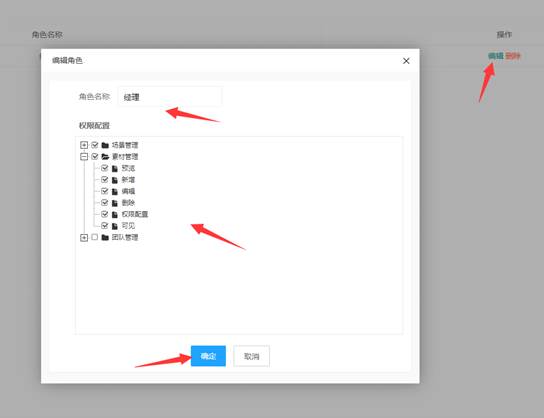 点击编辑角色按钮,打开编辑角色面板,修改需要变更的内容。点击确定保存结果。