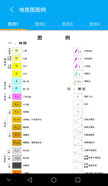 地质图图例:点击下方地质图图例按钮会跳转至地质图图例页面进行地质图信息查看。