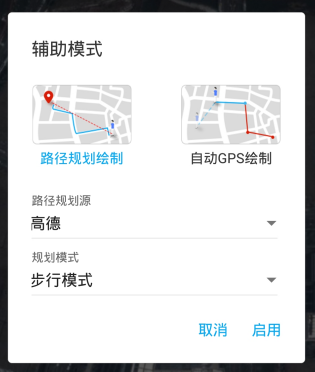 高级工具弹框包含:路径规划绘制(需在设置中开启)、自动GPS绘制、点位吸附(需在设置中开启)