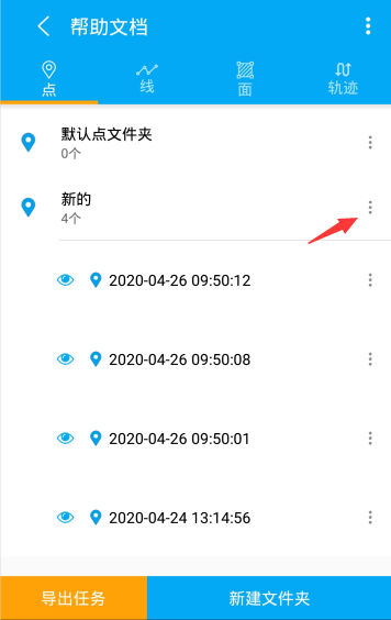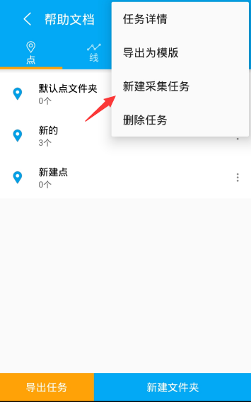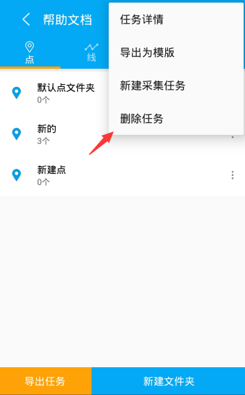 任务导出:可通过文件夹操作选项 或 数据管理页面中 下方导出按钮进行导出,点击后会弹出导出弹框,可针对需求进行KML/KMZ 、SHP 、Excel 进行导出