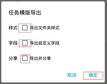 导出为模板:可通过数据管理页面中 点击右上方操作按钮展开操作选项,点击导出为模板后弹出模板导出弹框,勾选需要导出的内容后点击确定即可将当前任务导出为模板,后续再创建新任务时可通过此模板快捷创建。