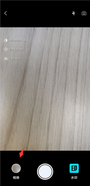 拍照:点击下方拍照按钮即可进行拍照,拍照后的照片会存至水印相册,可通过左侧相册图标点击放大查看