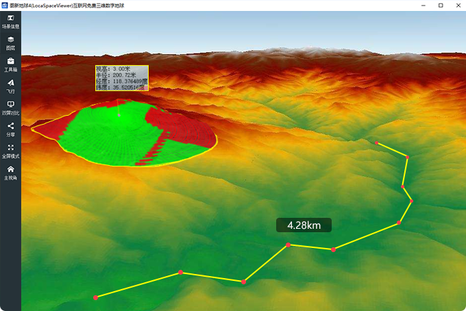 真三維實現精準空間量測、剖面分析、等高線生成、緩沖區分析等,360度無死角分析結果展現。