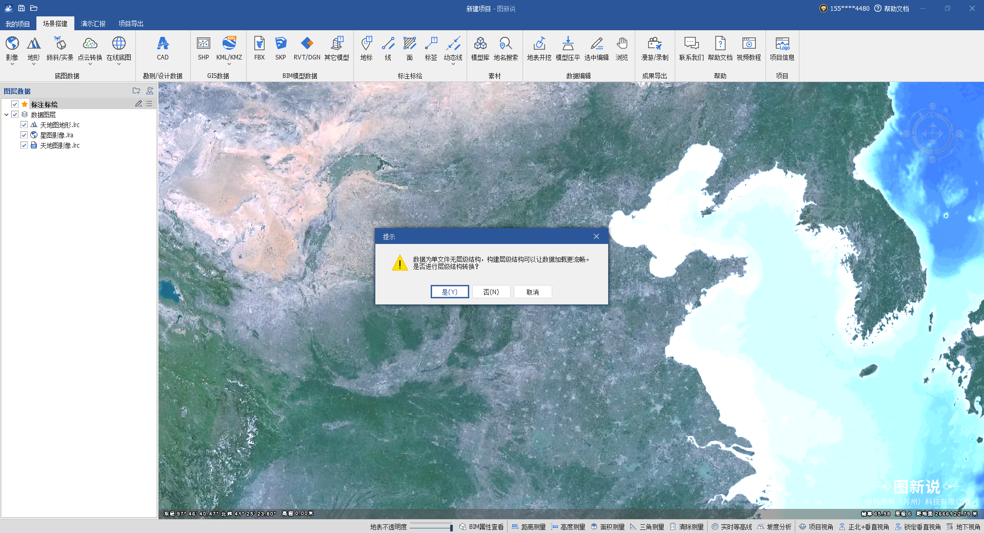 当数据量很大时,软件会提示“数据为单文件无层级结构,构建层级结构可以让数据加载更流畅。是否进行层级结构转换?”,建议点击“是”进行转换加载,提高数据浏览流畅度。