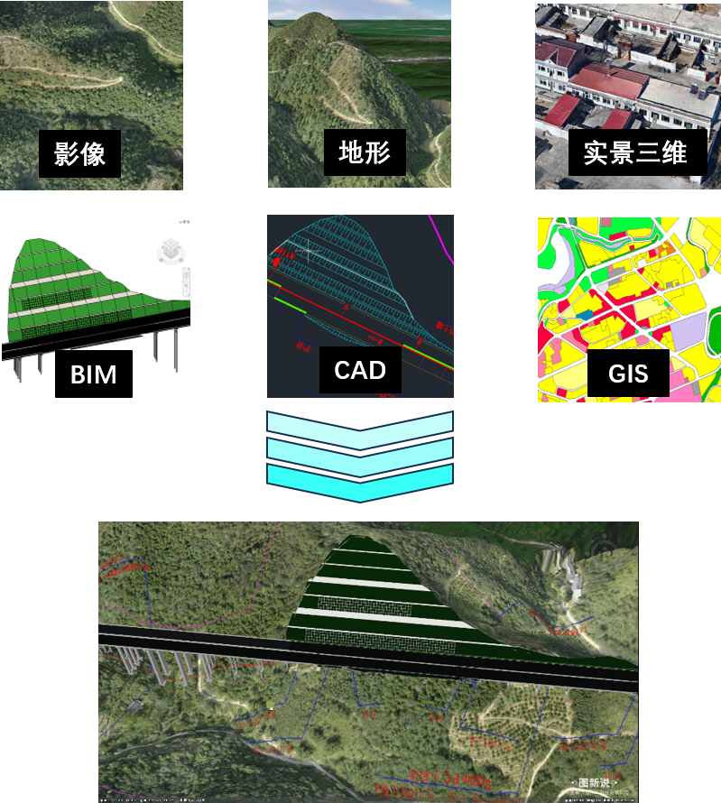 - 将影像、实景三维等周边现状数据与设计成果完美融合