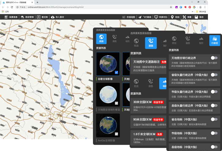 功能強大、簡明易用的三維場景在線搭建,滿足實景三維和人工模型同場景展示的需求